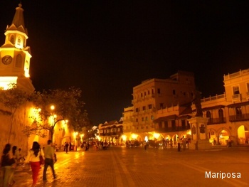 Nach unserem Robinsonleben auf Playa Blanca gönnen wir uns eine lange Dusche und ein ausgezeichnetes Abendessen auf der Plaza San Pedro Claver vor der Kirche San Pedro (der Pater hat sich gegen die Sklaverei eingesetzt und vielen Menschen geholfen).