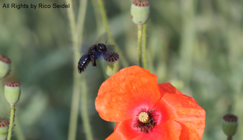 Blaue Holzbiene im Flug geknipst