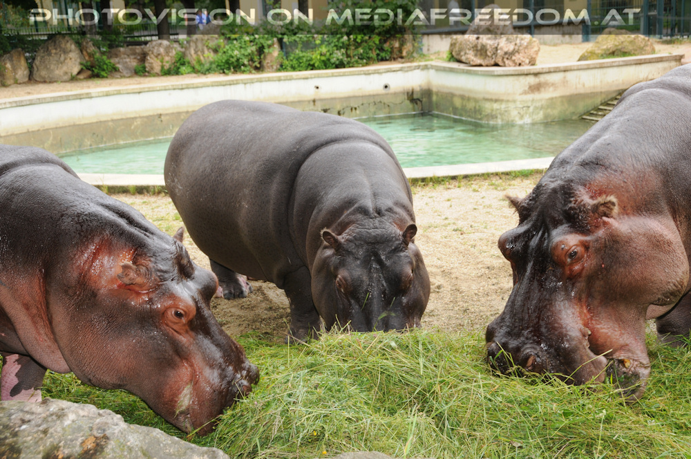 Gewaltiges Flusspferd Trio - Schönbrunn - Tiergarten