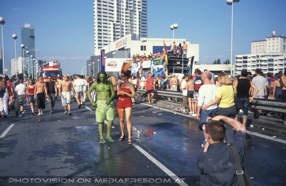 Grün/rot - Reichsbrücke (Loveparade)