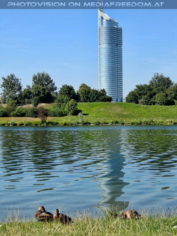 Milleniumtower mit Enten - Donauinsel