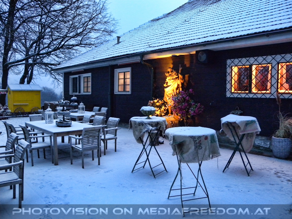 Beschneit - Leopoldsberg - Hütte am Weg