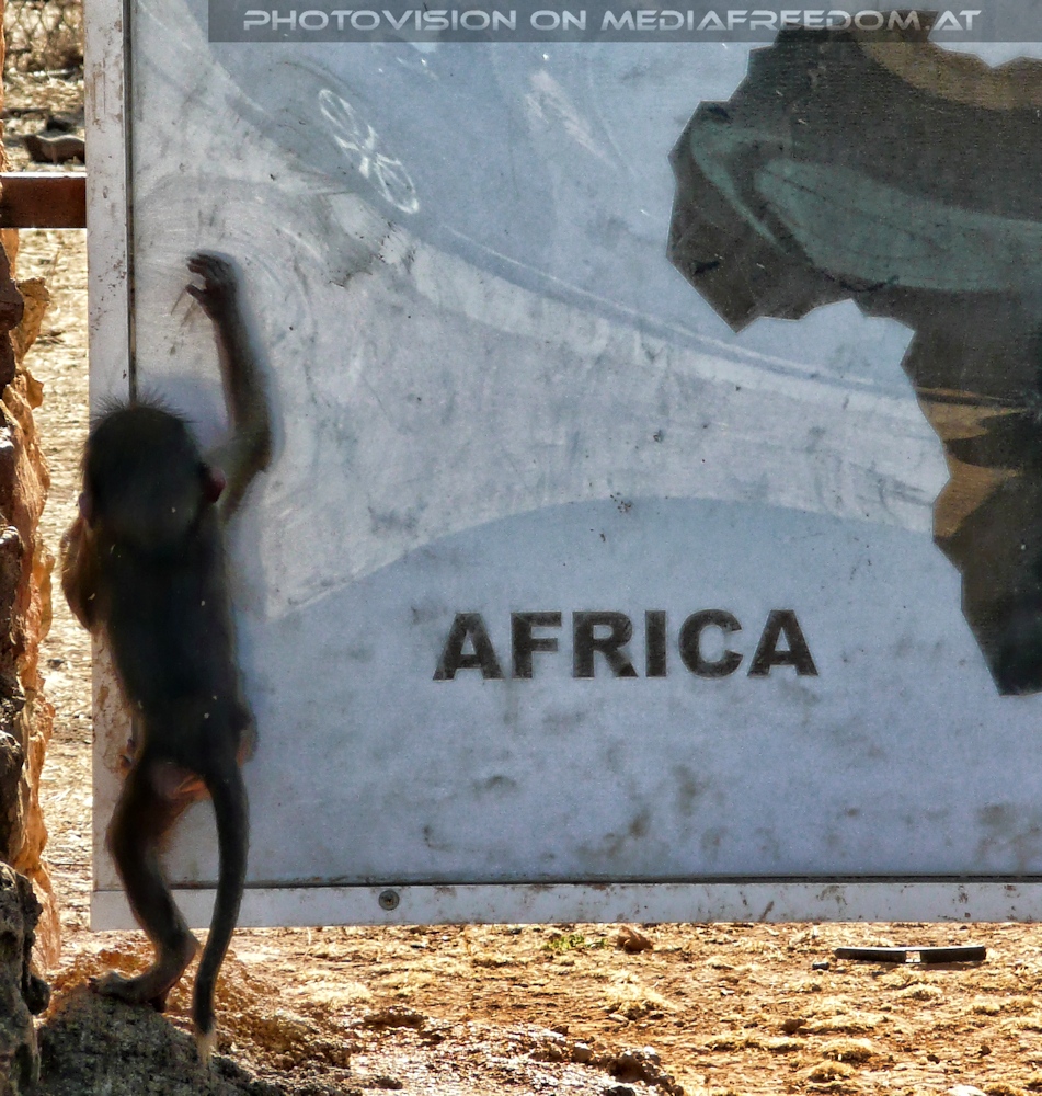 Pavianbaby auf Afrika Erkundung - Safari Zoo - Mallorca