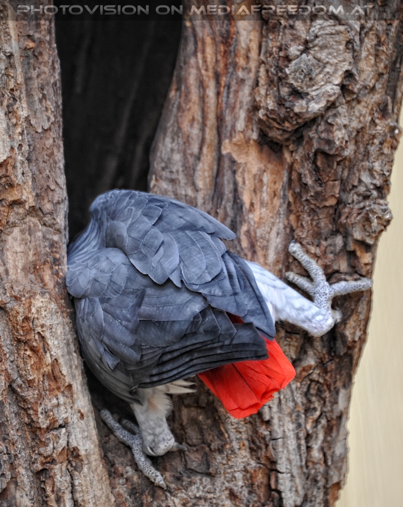 Graupapagei im Versteck - Tiergarten - Schönbrunn