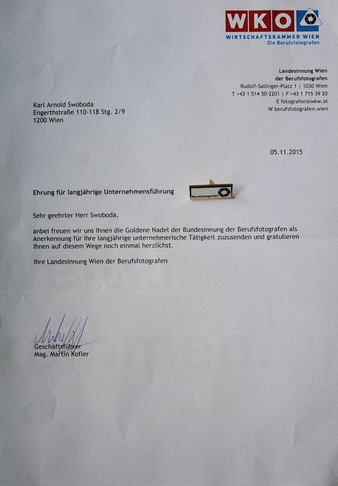 Die goldene Nadel der Bundesinnung der Berufsfotografen - Wien