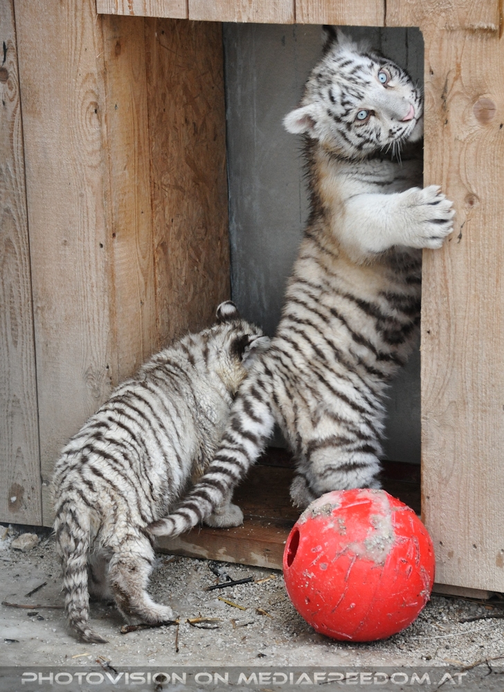 Tiger Drillinge im Schnee - 08.01.2012 Weisser Zoo