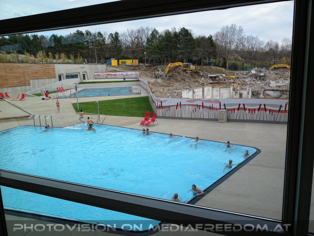TL2 Außenbecken mit Sicht auf Baustelle - Therme Wien