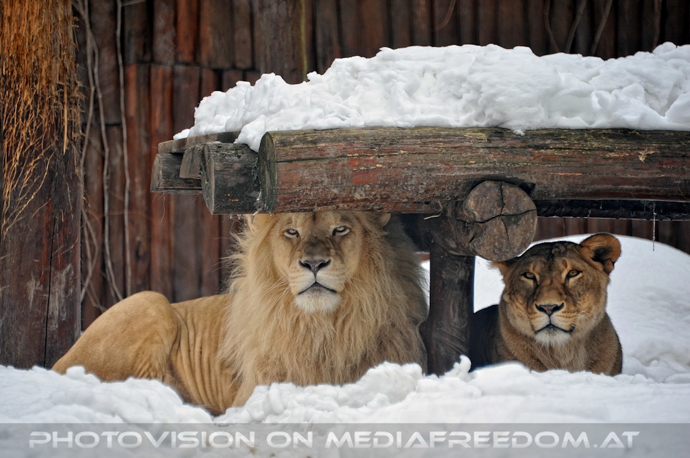 Löwenpaar im Schnee - Zoo Bratislava