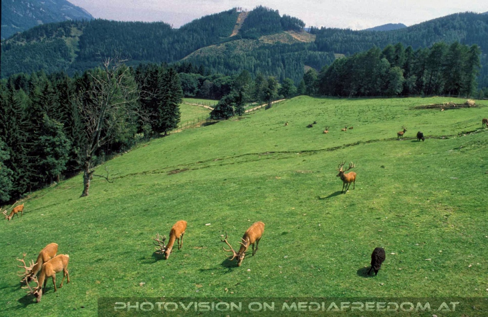 Weide mit Hirschen - Mautern - Wildpark