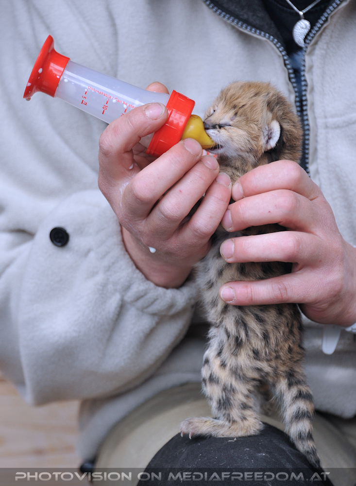 Fütterung des Servalbabys